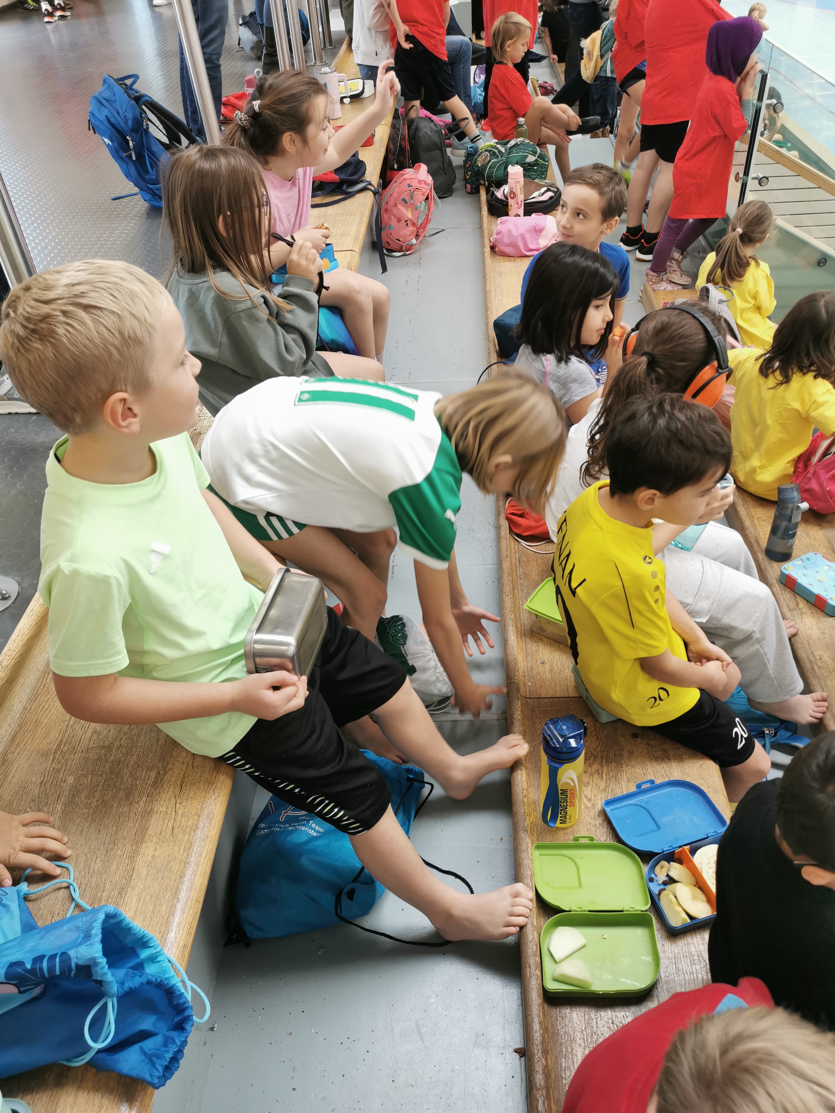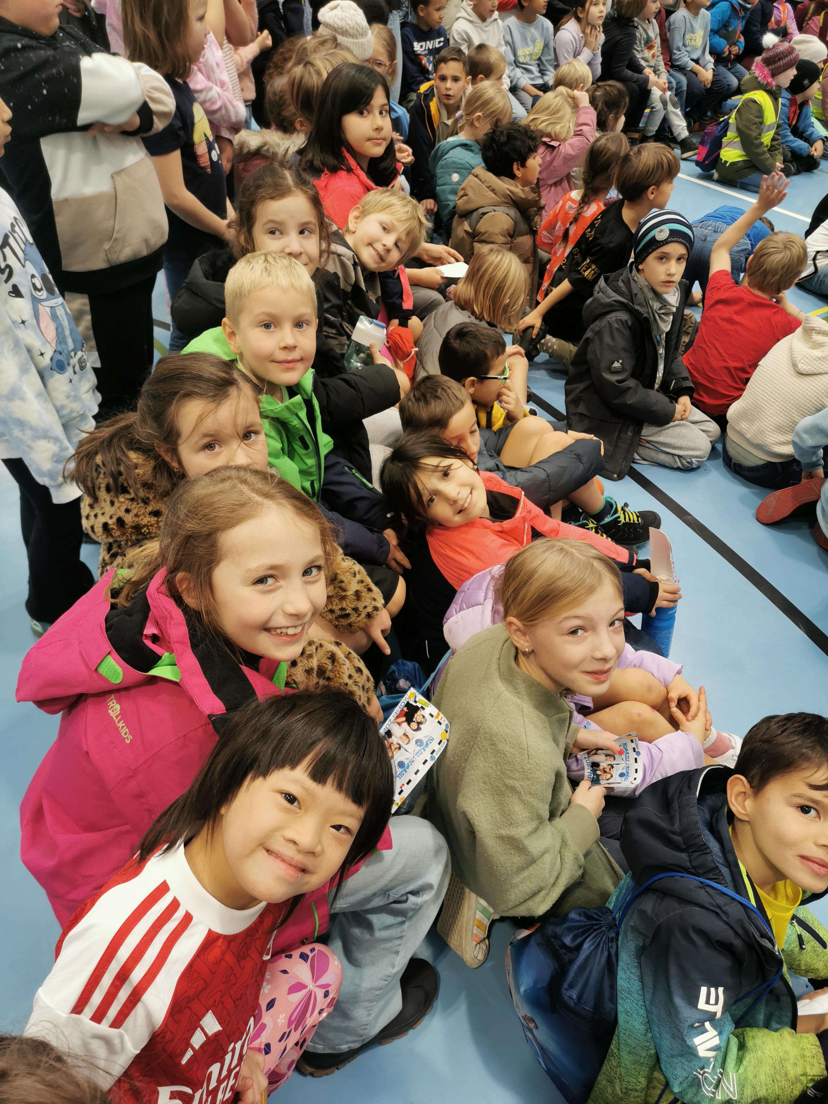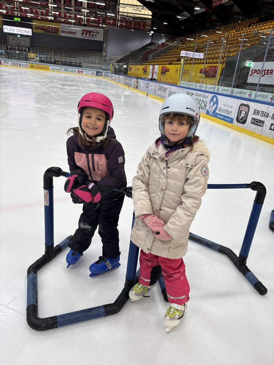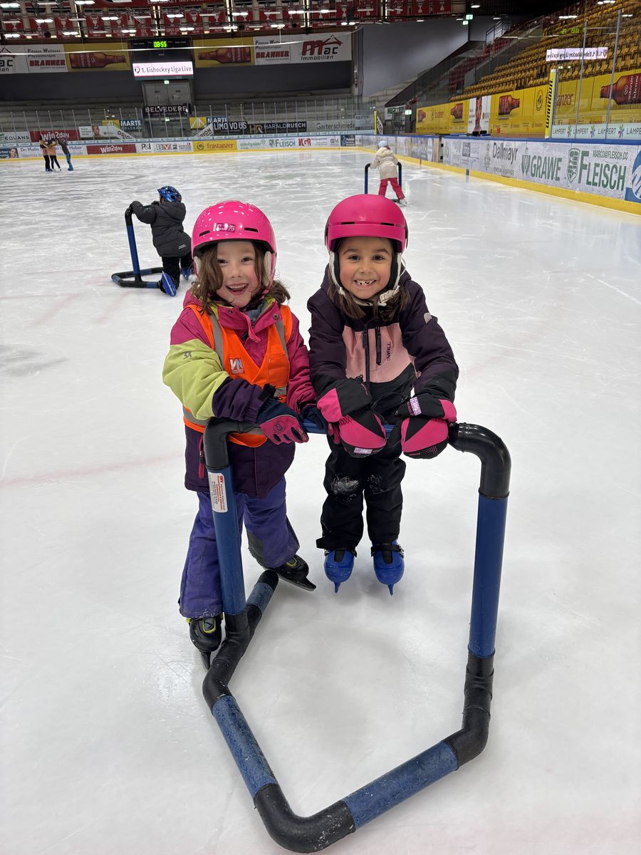 Die GTK1b der Praxisvolksschule war am 03.12.2025 beim Eislaufen in der Vorarlberghalle. Wir hatten die ganze Eislaufhalle für unsere Klasse. Leider sind wir oft hingefallen, aber Übung mach den Meister! Das Eis war rutschig und sehr kalt. Wir sind Slalom gefahren. Am Ende haben wir ein Foto gemacht. Wir sind mit dem Bus hin und her gefahren. Es hat viel Spaß gemacht!