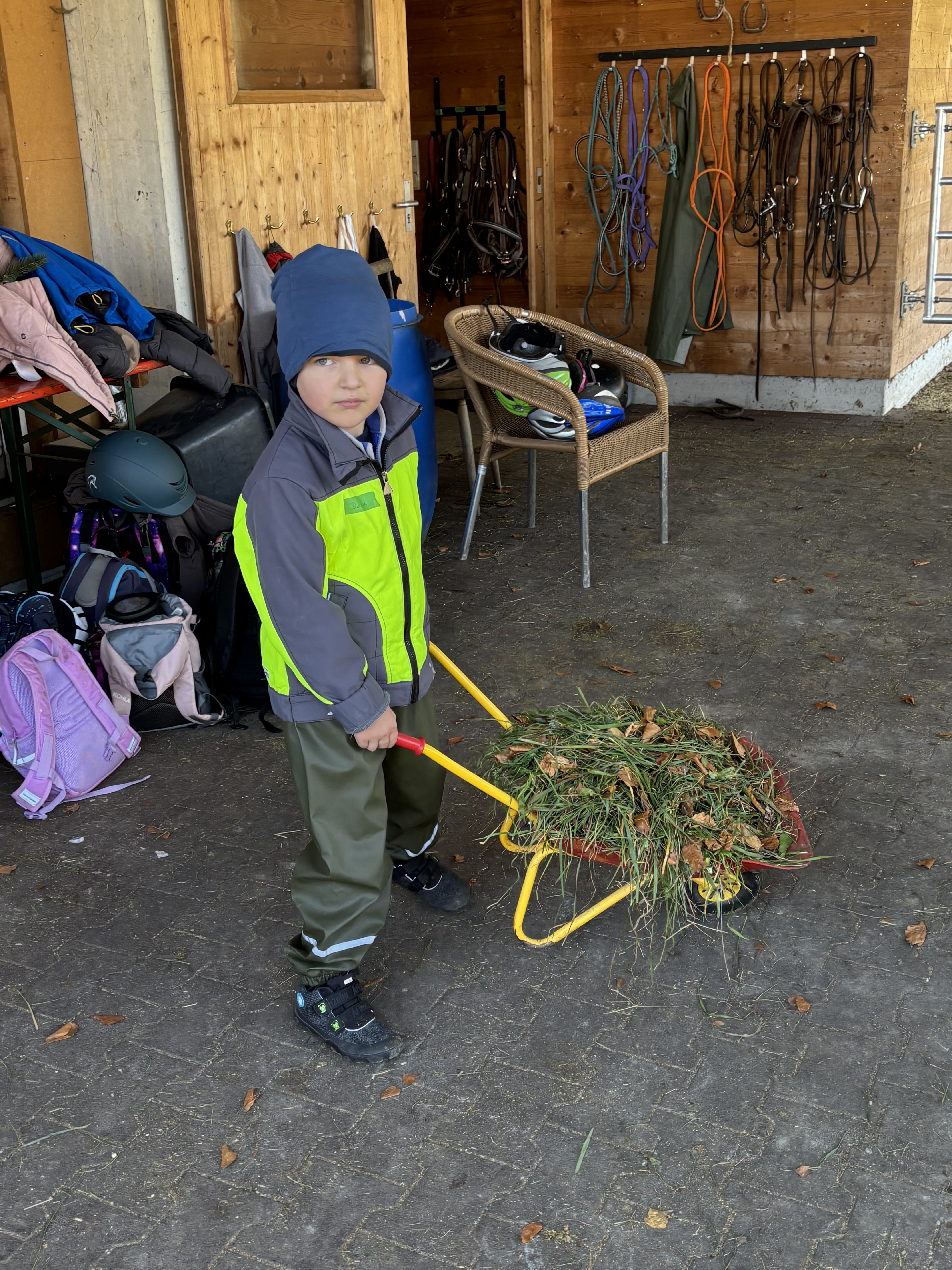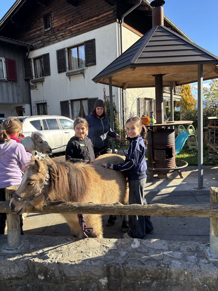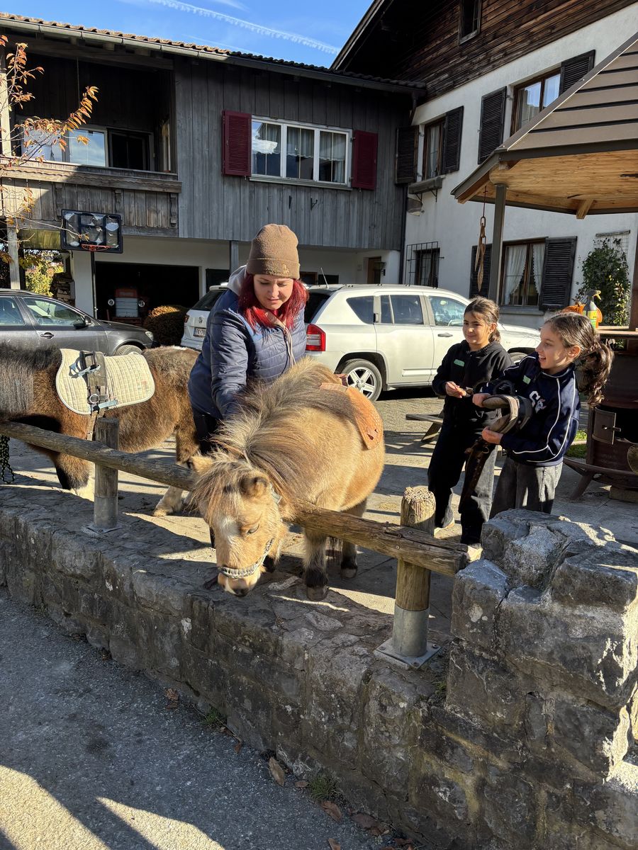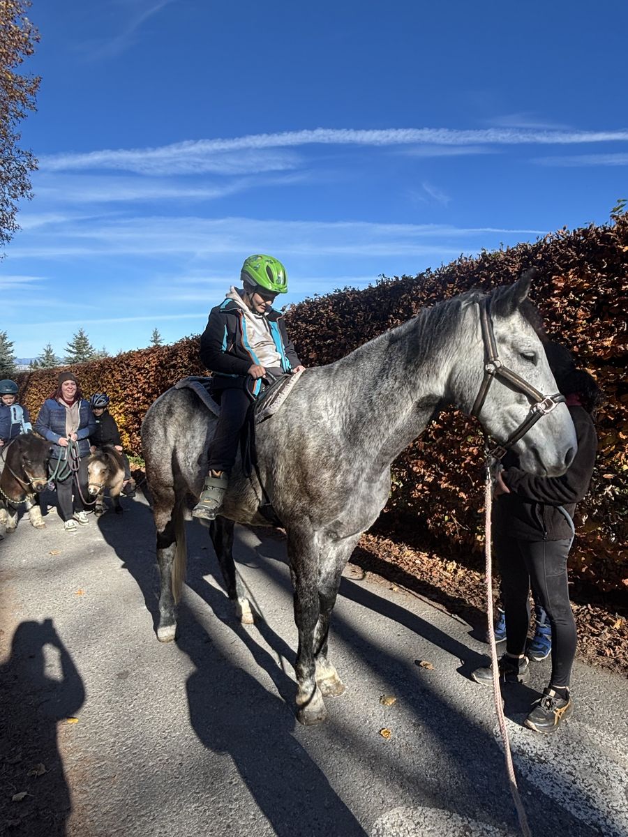 Nach dem Busfahren liefen wir vom Gemeindeamt im Frastanz nach Amerlügen. Es wahr mühsam, hoch zu kommen, aber endlich war die 1. Etappe geschafft. Später die 2. Etappe - da habne wir eine Jausen-Pause gemacht. Das letzte Stück war geschafft. Wir waren beim Saminahof. Beim Saminahof haben wir 2 Gruppen gemacht. Die erste Gruppe hat ausgemistet, die andere Gruppe war reiten. Die Reit- und Ausmistgruppe haben getauscht. Die Route beim Ausreiten war bei beiden Gruppen gleich. Am Ende hat jeder von der Reitlehrerin ein Gummibärchen gekriegt. Das Runterlaufen war so lustig.