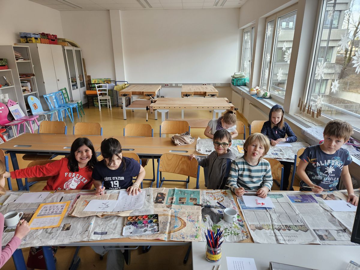 Anlässlich des Internationalen Tages der Muttersprache am 21. Februar, gab es am Montag 23. Februar ein Sprachenprojekt für alle GTK-1-Klassen. Während zwei Unterrichtsstunden kamen die Kinder an sechs Stationen mit unterschiedlichen Sprachen und Schriften in Berührung. Es wurde gelesen, selbst geschrieben, gerätselt, aufmerksam zugehört und gestaunt. Neugierig und konzentriert ließen sich die Kinder auf die unterschiedlichen Aufgaben ein. An manchen Stationen hätten sie bestimmt noch länger verweilen können.