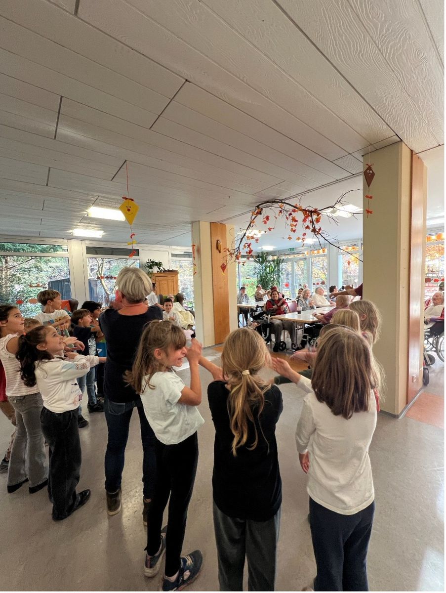 Am 05. November 2025 war es so weit. Wir besuchten mit zwei Begleitpersonen und unserer Lehrerin das Haus Schillerstraße. Frau Lercher-Lueger und das ganze Personal, sowie die Bewohnerinnen und Bewohner warteten schon gespannt und begrüßten uns freundlich. Wir hatten Lieder vorbereitet, von denen wir dachten, dass sie bei den Bewohnerinnen und Bewohnern Erinnerungen wachrufen oder sogar mitgesungen oder -geschunkelt werden kann.