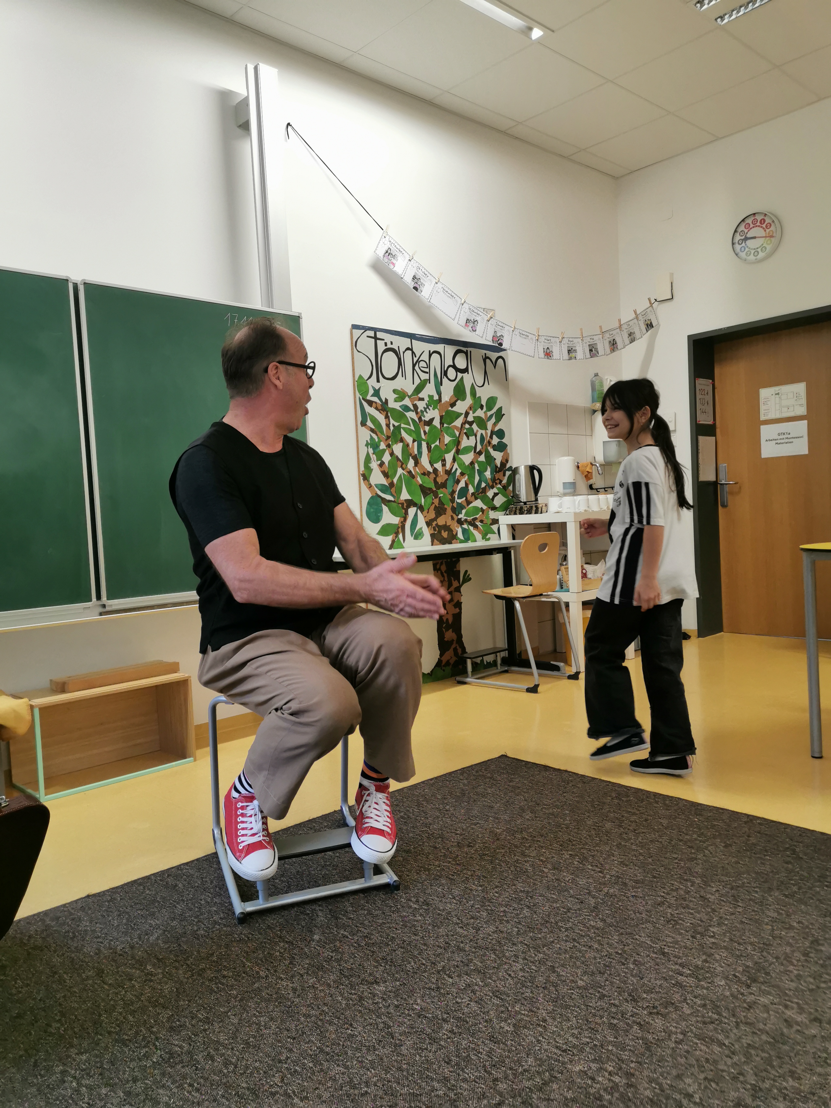 Mit Körpersprache, Ausdruck, Gestik, Mimik und Körpertechnik erleben die Kinder wertschätzendes Benehmen und ein respektvolles Miteinander.