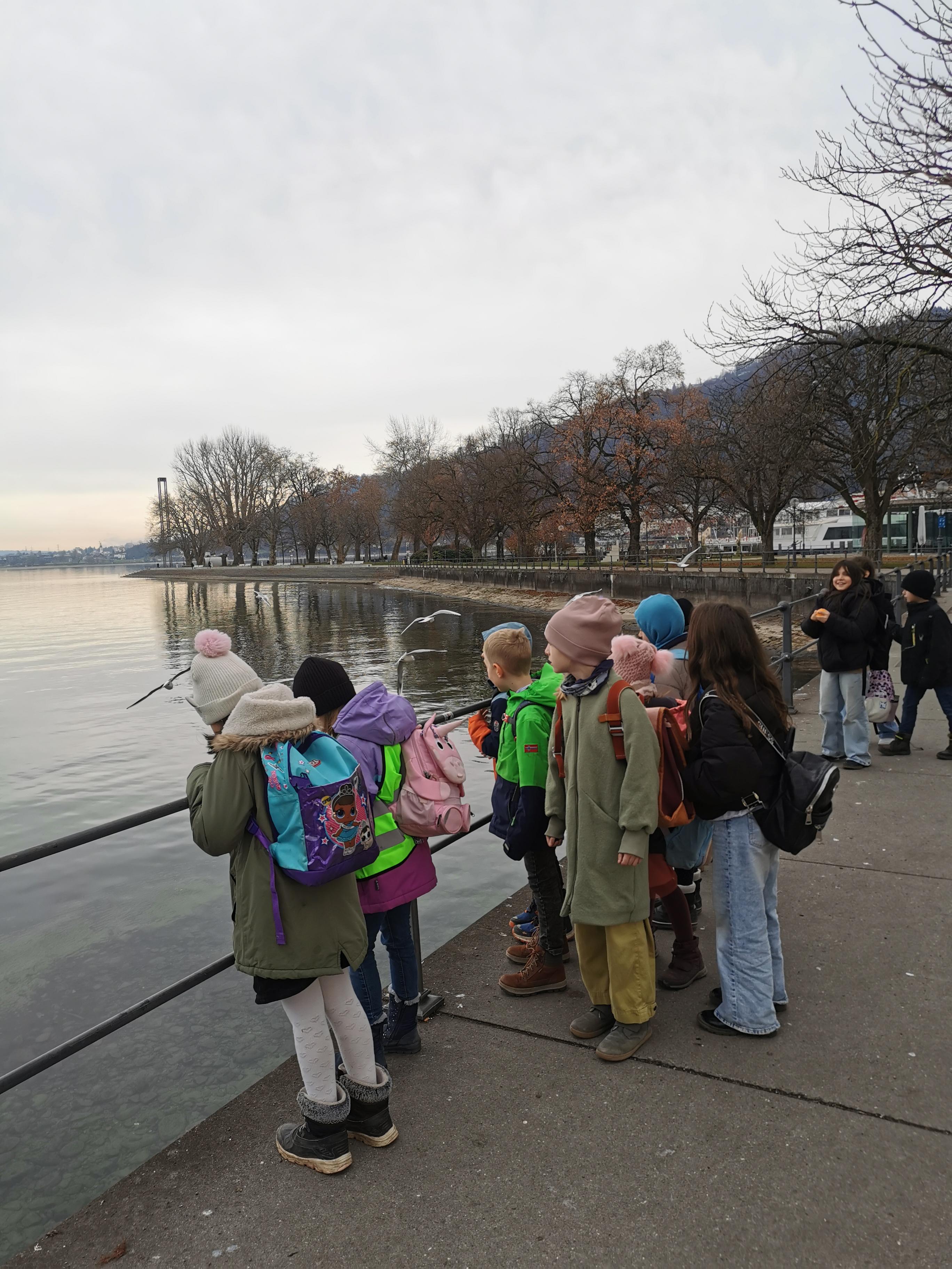 Nach dem Theater liefen wir durch den Weihnachtsmarkt und am schönen Bodensee entlang, wo wir Schwäne und Möwen beobachten konnten.