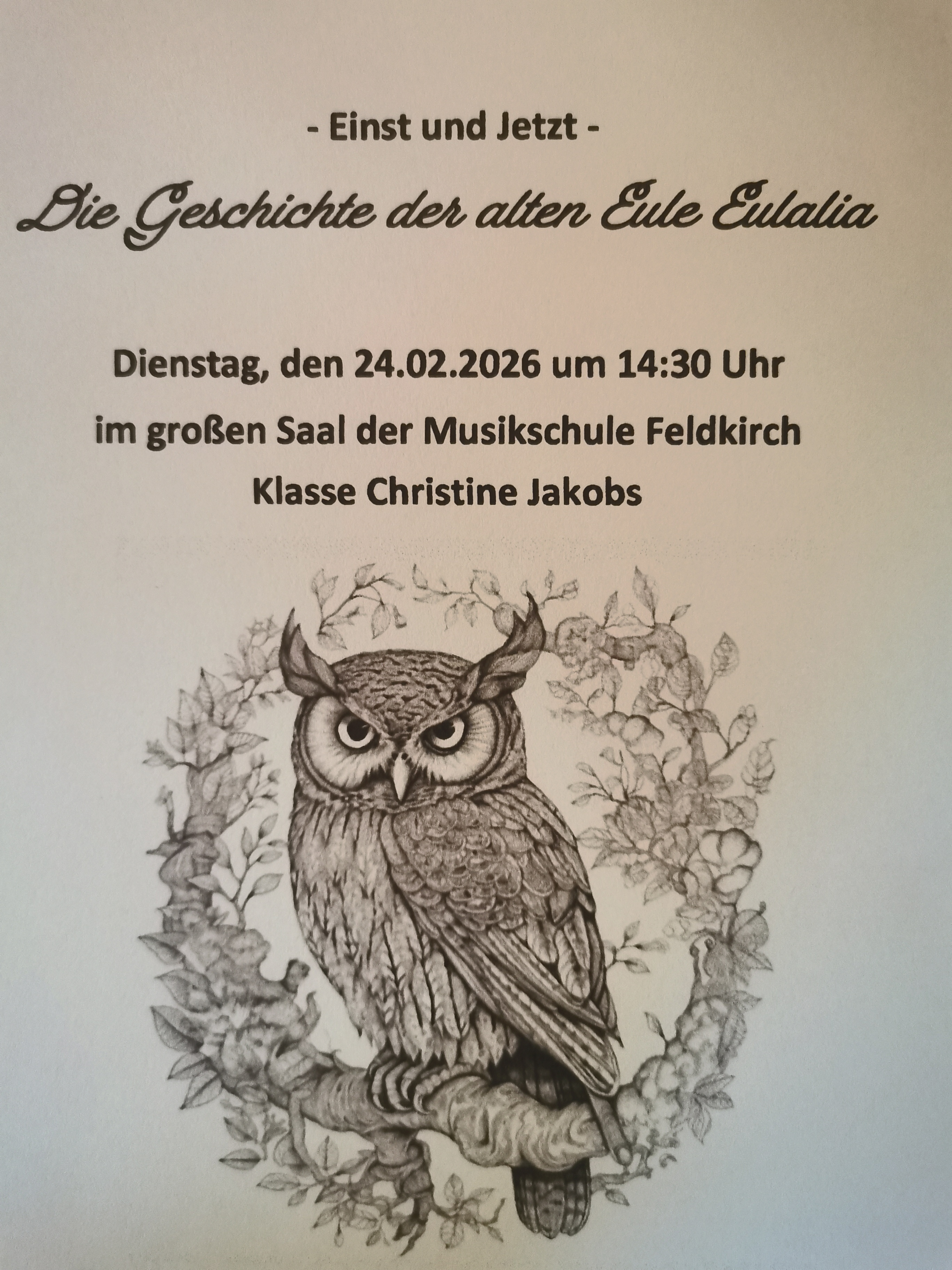 Am Donnerstag wurde die GTK1 zur Generalprobe des Stücks "Die Geschichte der alten Eule Eulalia" in die Musikschule eingeladen.