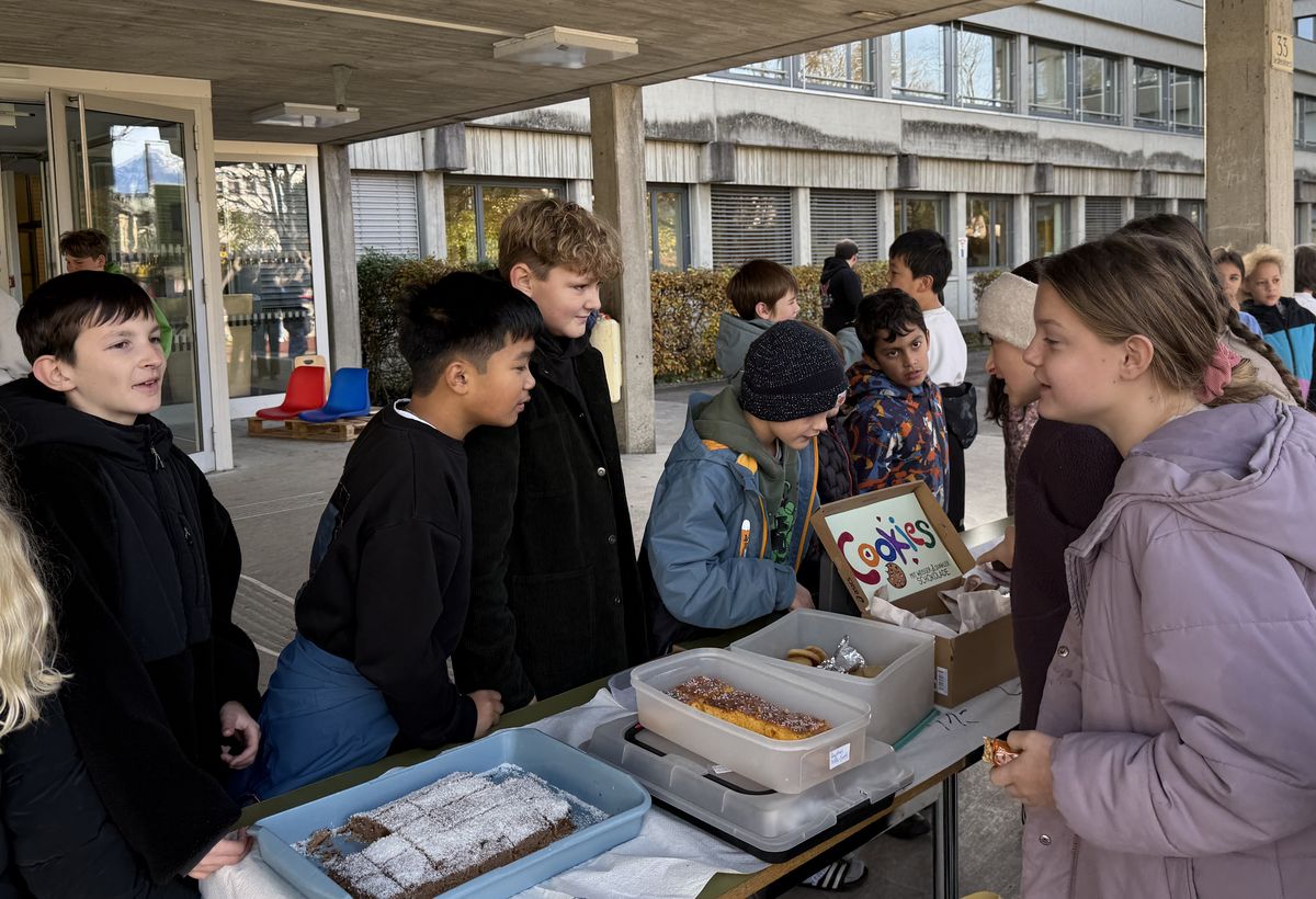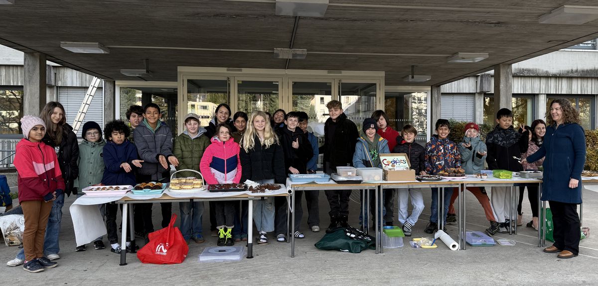 Im November sammelte die 2b Klasse bei einem Kuchenverkauf in der großen Pause und in der Pädagogischen Hochschule Geld für ein E-Piano.