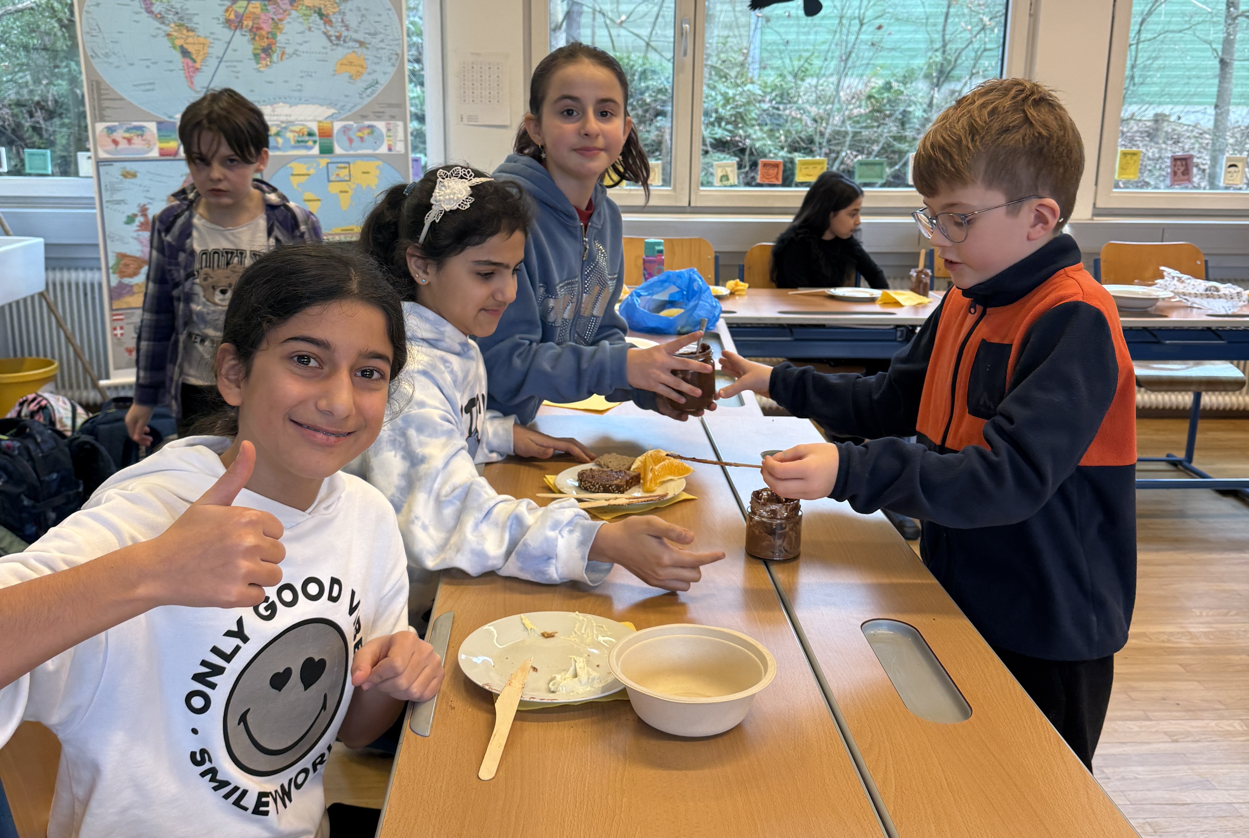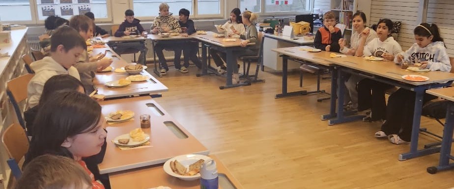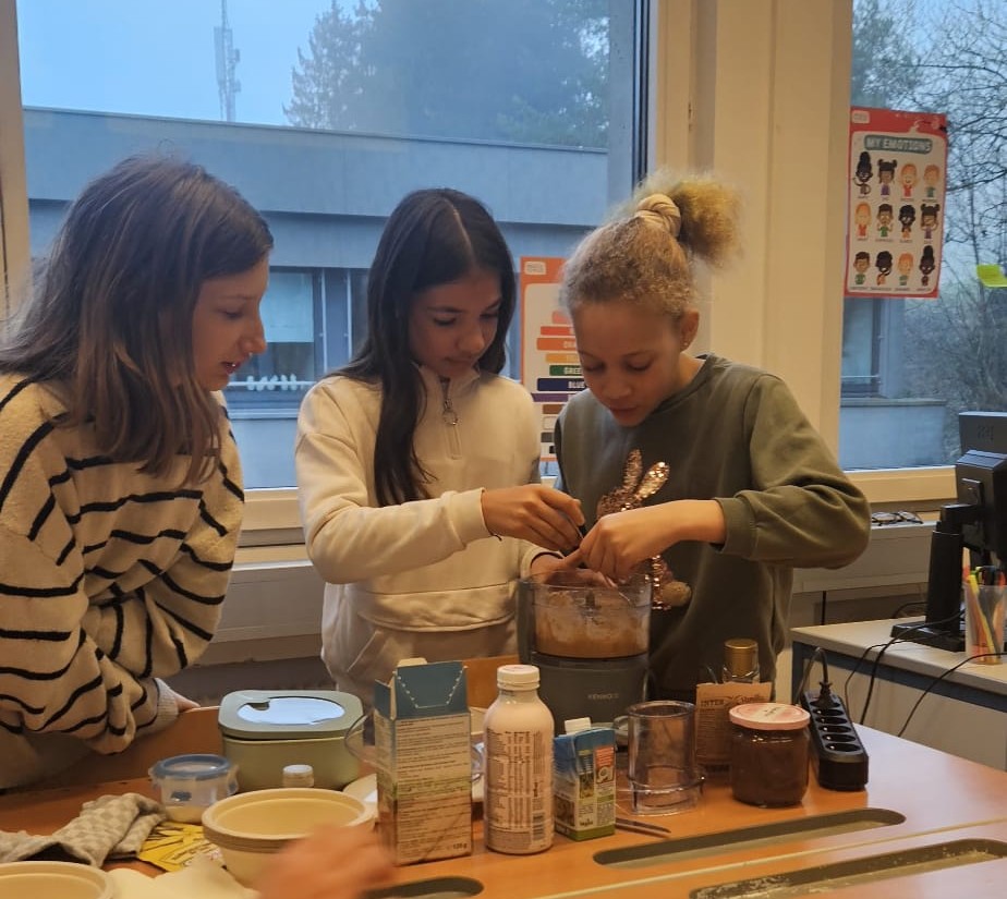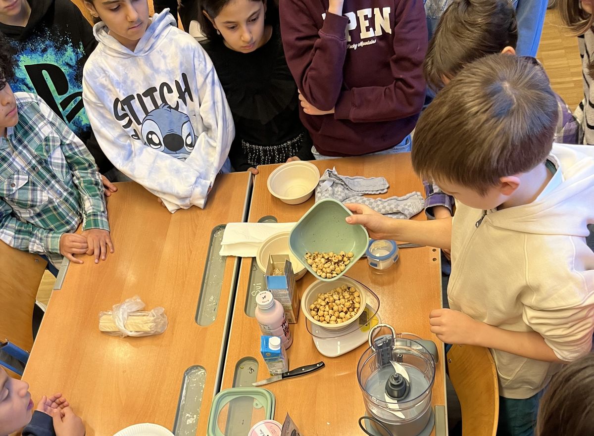 Am 5. Februar wurde in der 2b Klasse im Rahmen des Biologieunterrichts selbst Nutella erzeugt und ein gesundes Frühstück zubereitet. Alle Kinder halfen eifrig mit und genossen das gemeinsame Essen.