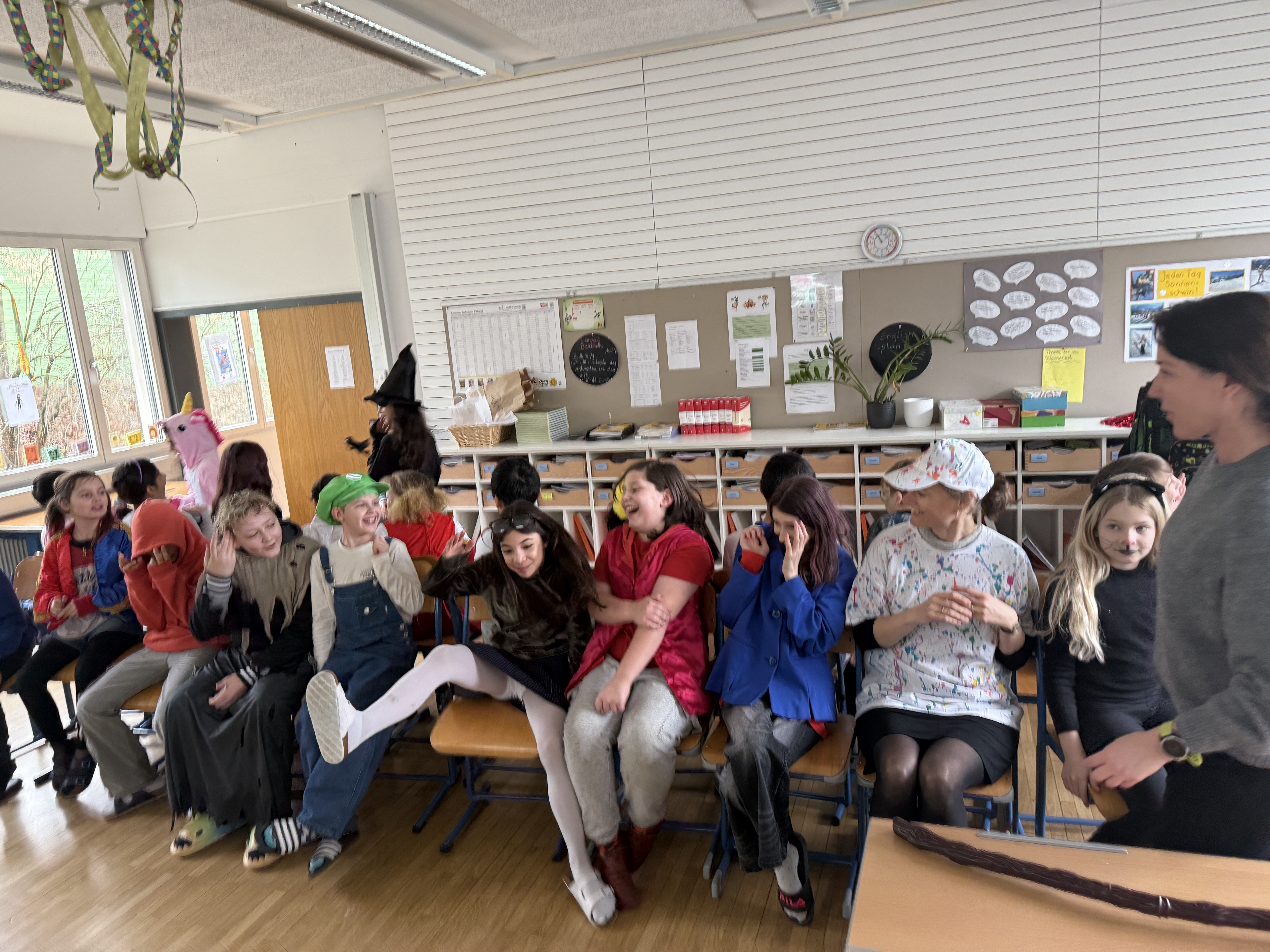 In der GTK1 und in der GTK2 durften die beiden auch Teile des Musikunterrichts gestalten. Mit Unterstützung der Lehrpersonen studierten sie mit den Kindern das Lied Kuliko jana ein, das es über die Wochen auf der persönlichen Hitliste der Kinder und Lehrpersonen sehr weit nach oben geschafft hat.