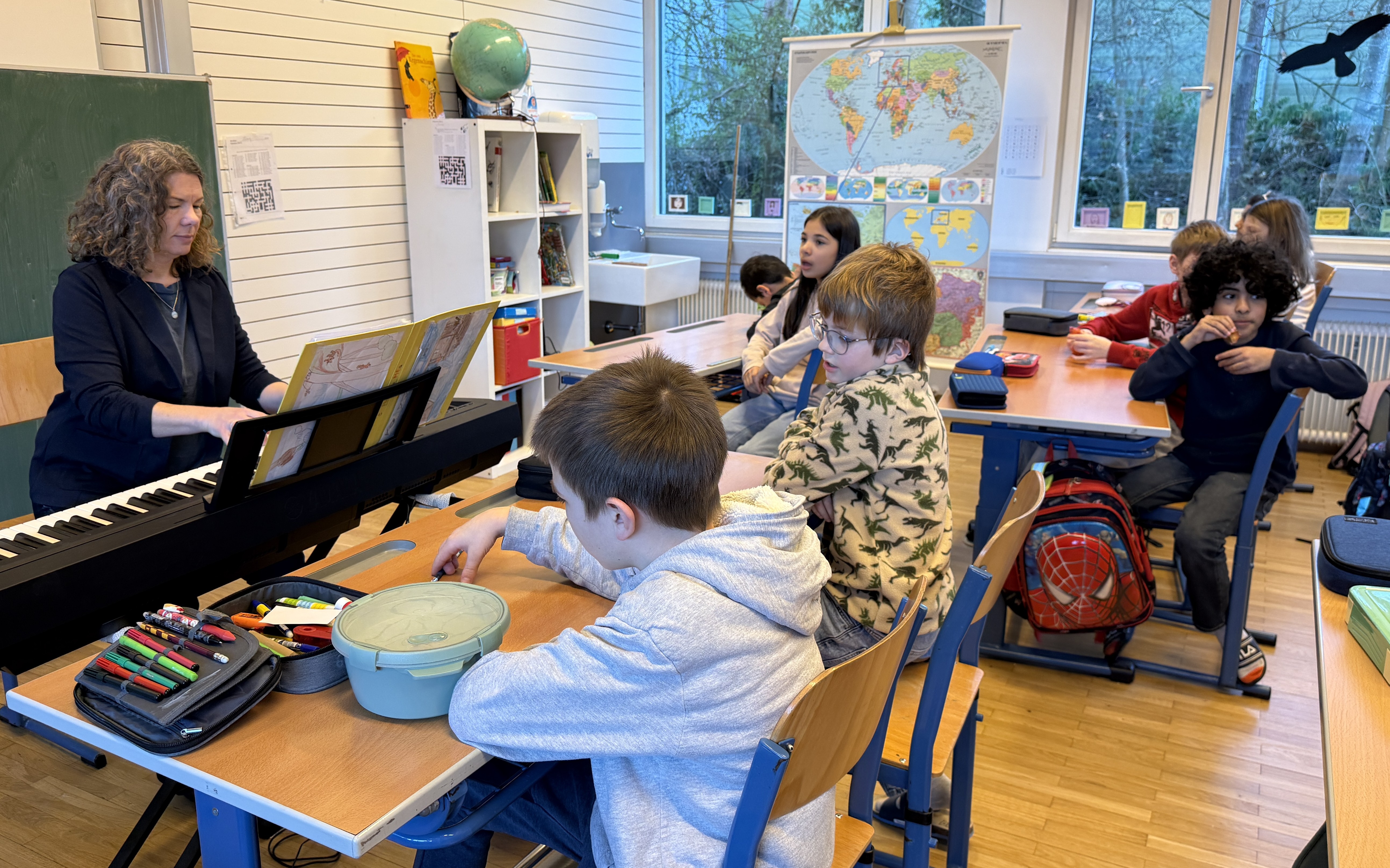 Der Verkauf war ein großer Erfolg und nun können die Kinder mit Pianobegleitung auch mal in der Klasse mit Frau Aebis Begleitung ihre wunderschönen Stimmen beim Singen klingen lassen.